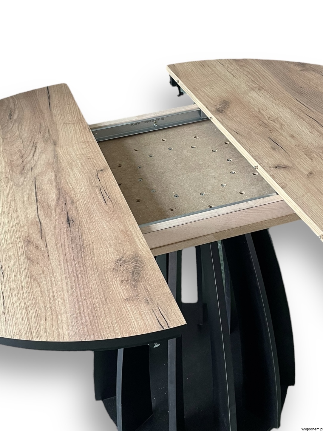 ? Funkcja rozkładania Ø100 → 140 cm — jedna wkładka 40 cm pozwala szybko dopasować wielkość stołu do aktualnych potrzeb. (możliwość zamówienia stołu rozkładanego do 180cm lub nierozkładanego na pozostałych naszych aukcjach)