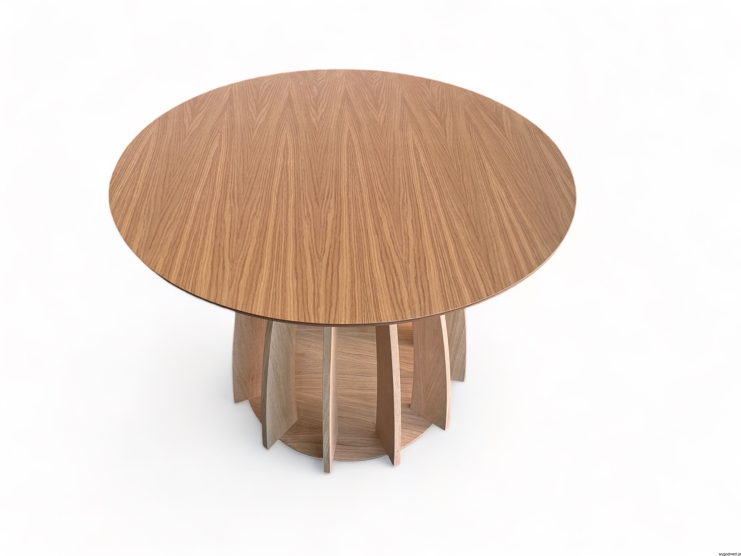 Prezentujemy Państwu niezwykły stół STF220/100, który wzbogaci wnętrze Państwa domu o nowoczesny i stylowy akcent. Ten okrągły stół został wykonany z wysokiej jakości forniru, zapewniając trwałość i elegancję na długie lata. Jego podstawa, w formie lameli, nadaje mu unikalny wygląd, który nie tylko zachwyci gości, ale również stanie się doskonałą ozdobą każdego pomieszczenia.